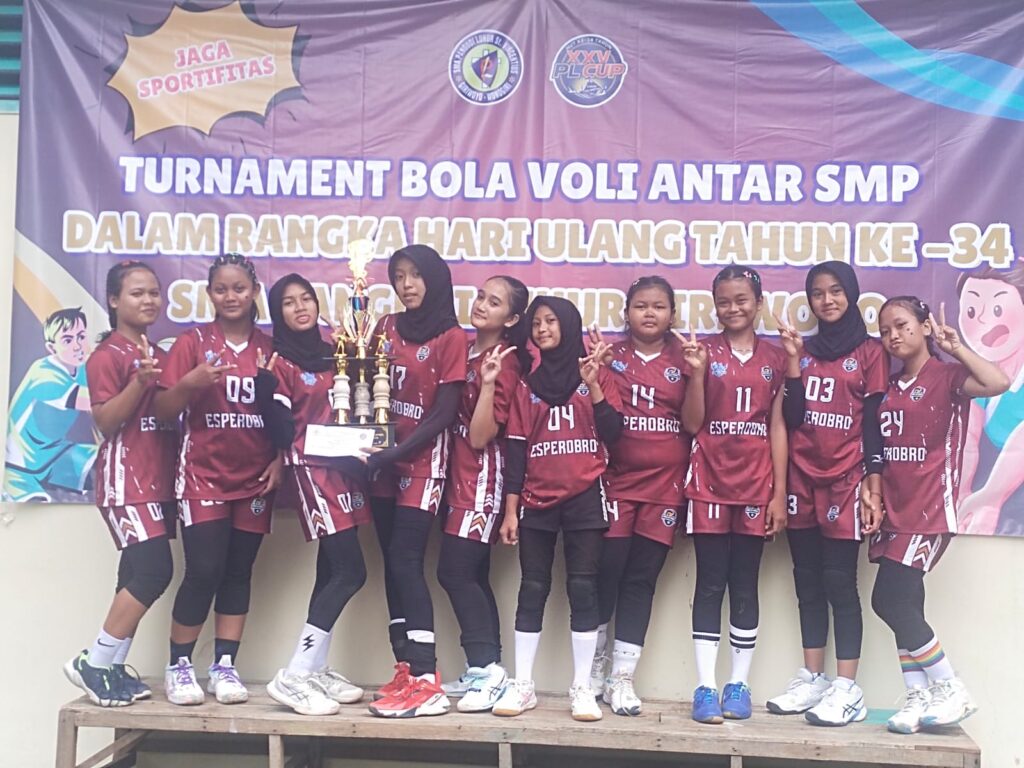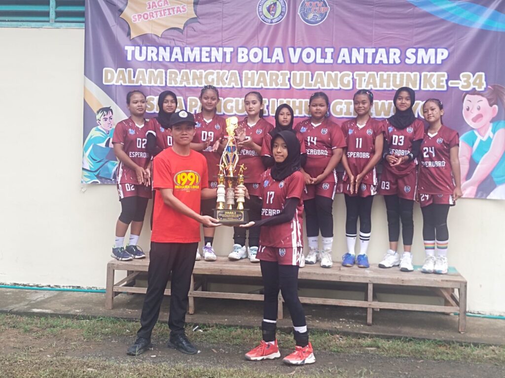 Baturetno – Tim bola voli putri SMPN 2 Baturetno berhasil meraih juara pada Volleyball Tournament dalam rangka HUT ke-34 SMA Pangdui luhur Giriwoyo, Voly antar SMP yang diselenggarakan pada 22 November 2025 di Lapangan Bola Voly SMA Pangudi Luhur Giriwoyo .